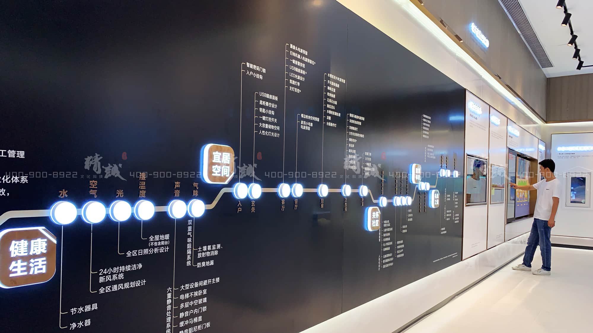 玻璃墙面上的每一个文字都在描述着万科在探索宜居住所路上的一个个“成果”。