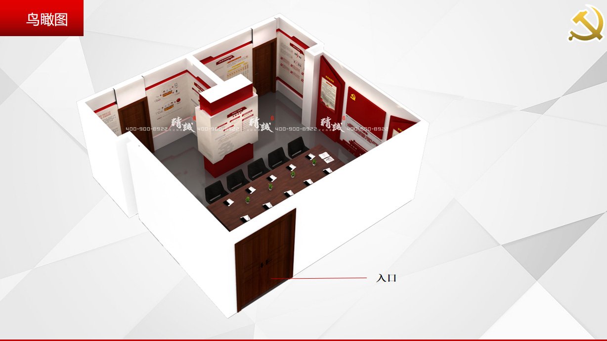 安康镇坪县市场监督管理局展览馆设计效果图主要以白色、红色、为主色。以下是91桃色APP下载免费版展览设计