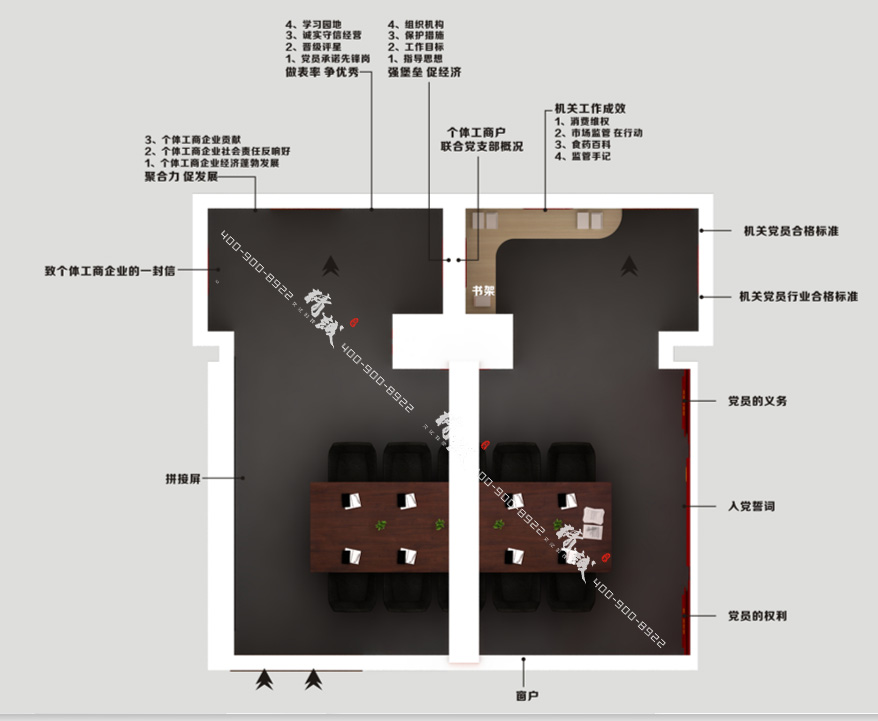 安康镇坪县市场监督管理局城关个体工商户联合党支部活动中心汇报方案-效果图