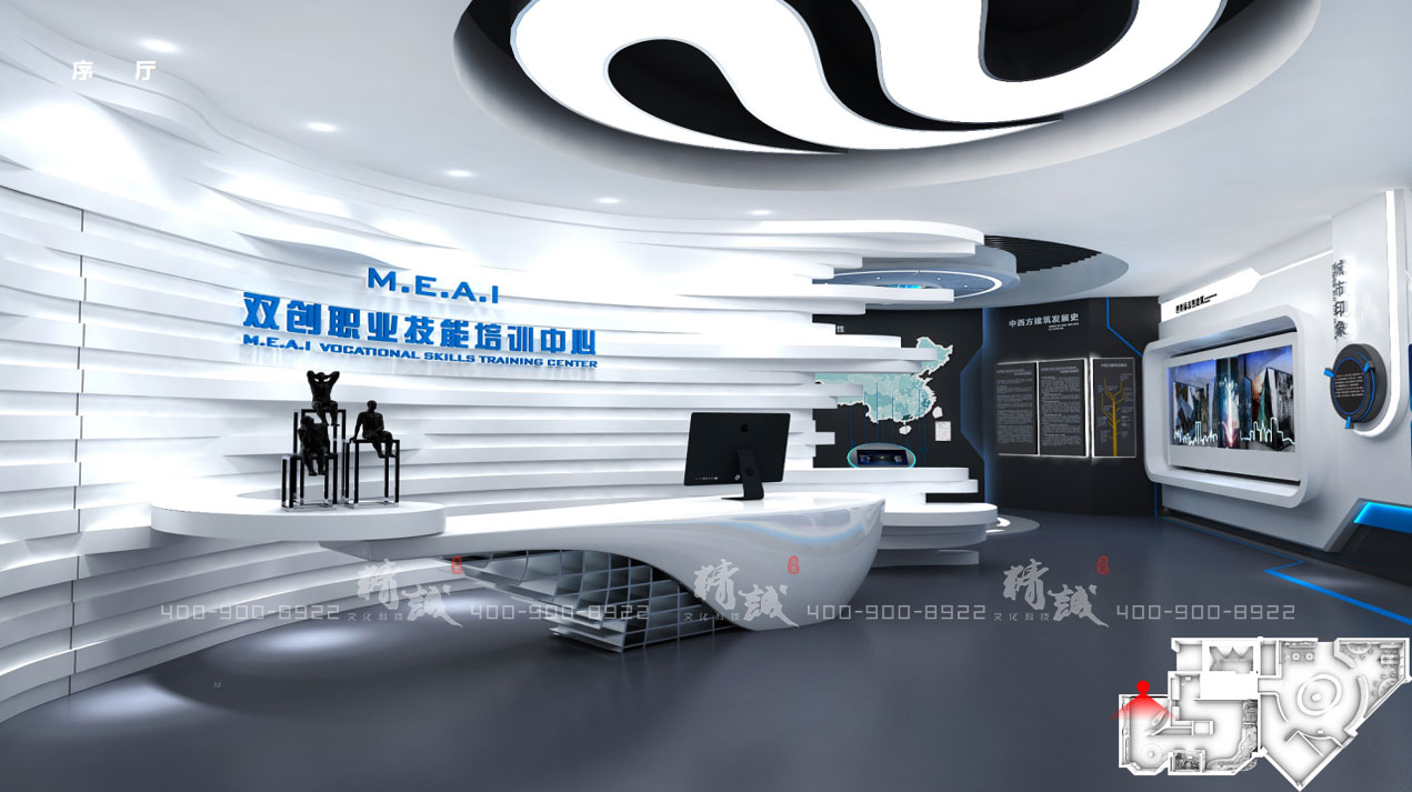 本项目为三好软件针对双创建立的职业技能培训中心,集科普、教育、培训于一体,运用现代化展陈手段打造,风格设计上凸显91桃色APP在线观看入囗理念,体验上依托多种类多媒体技术强调展陈的互动性,使参观者在寓教于乐的参观体验过程中,了解施工工程的历史发展,工法工艺,以及三好软件强大的创新科研能力和近年来的优秀成果和未来发展规划。