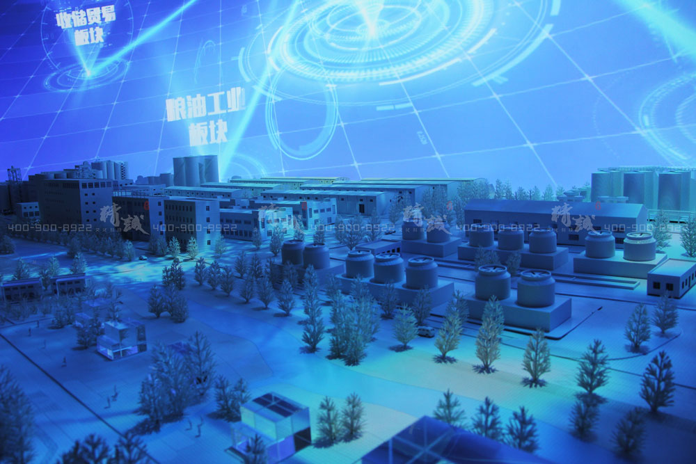 利用数字投影升级沙盘,配合弧幕投影,以声光电联动的效果播放粮农集团宣传片,给观者以强烈的视觉震撼。