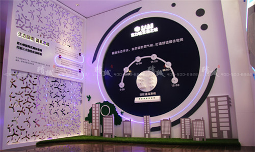 西安富力地产的本次品牌展览馆主要以紫蓝色和白色的背景组成,下面小编带大家一起来看看展示效果。