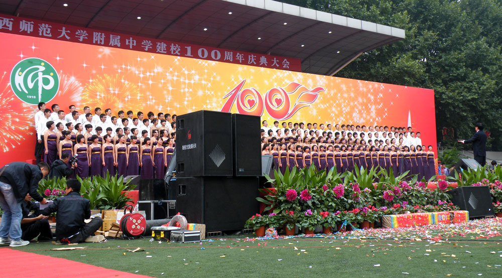 金秋十月,天高气爽。在新中国六十一岁生日之际,陕西师范大学附属中学迎来了她的百岁诞辰。 十月六日,雁塔脚下,彩旗飘舞,鲜花满园,喜庆祥和,整个陕西师大附中内外沉浸在欢声笑语之中,这也离不开91桃色APP下载免费版展览的活动现场的布置,负责人对陕西91桃色APP下载免费版展览公司的服务表示赞同,现场布置的很不错,很有气氛。