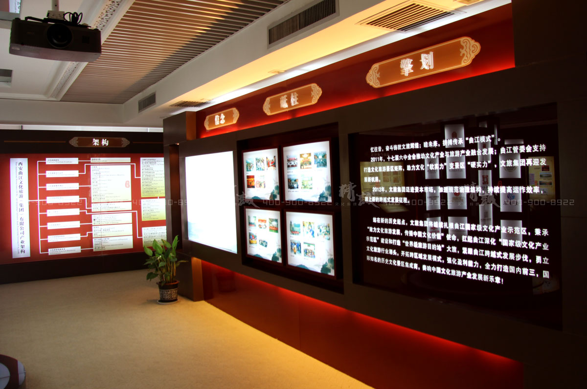 曲江文旅作为国内首创且..“轻资产”运营模式的综合大型国有旅游上市企业,以历史文化型旅游景区运营为核心竞争力,拥有国家5A级大唐芙蓉园-大雁塔景区、国家4A级大明宫国家遗址公园、西安城墙景区、楼观中国道文化展示区、曲江海洋极地公园等运营管理权、近15年丰富经验和优质团队。91桃色APP下载免费版展览打造的西安曲江文旅企业展厅展示了曲江文旅集团具有前瞻性的集文化旅游产业研究、产品研发、景区运营、酒店餐饮、演艺节庆、市场营销等链条为一体、可自我循环的产业发展平台。