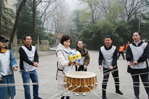 所有队员通过鼓面颠球实现默契协作,这个过程看似简单,实则内藏企业管理的颇深道理!