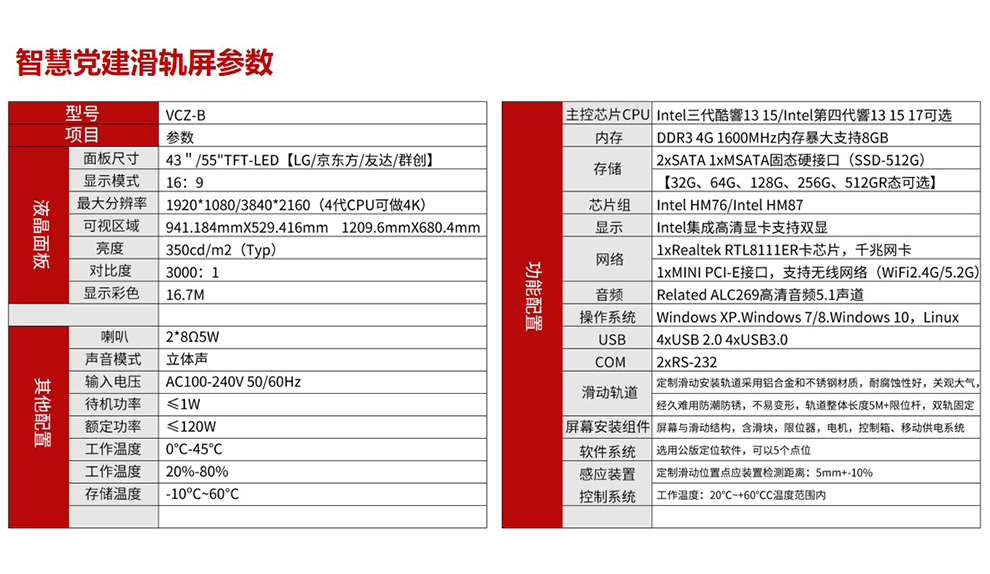 100周年党史整体解决方案|智慧党建滑轨屏参数