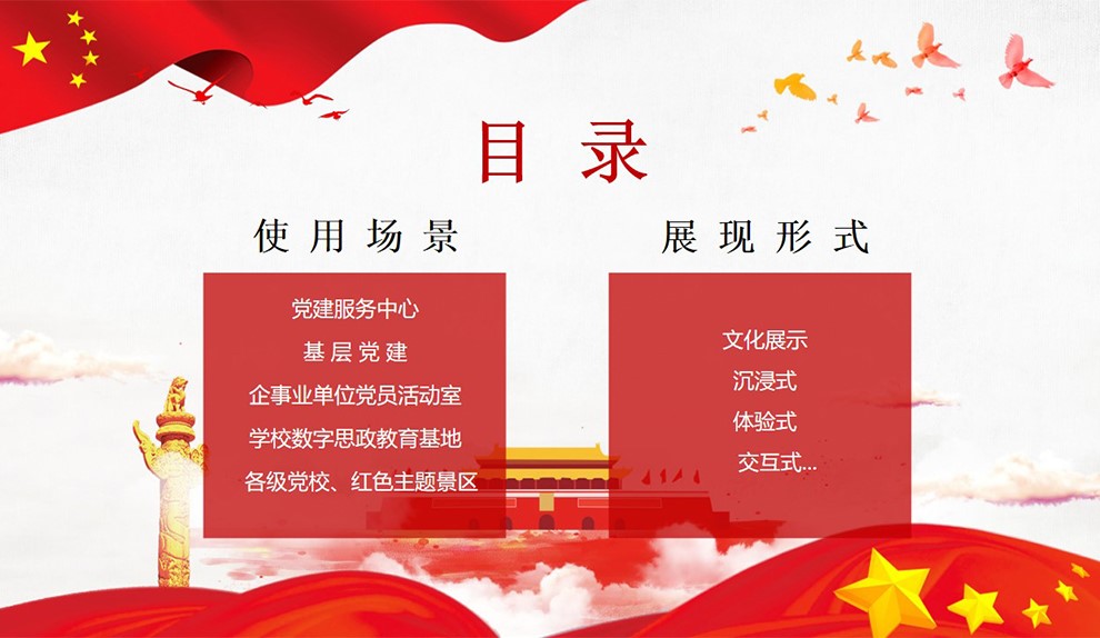 百年党史|100周年智慧党建馆设计整体解决方案主要讲述了使用场景与展现形式