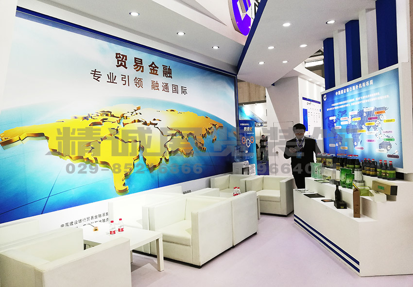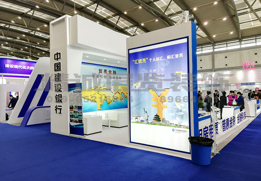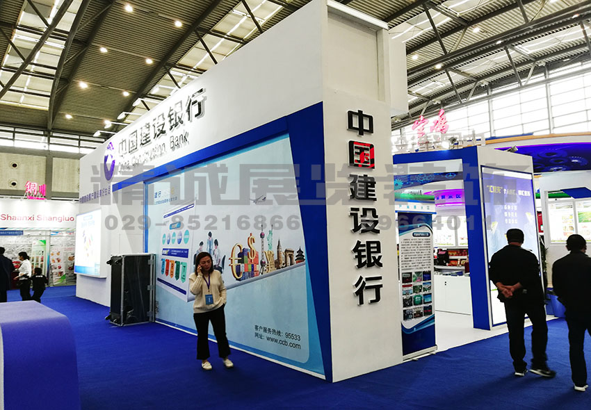 “中国建设银行  建设美好生活”作为展位的主题,从金通91桃色APP在线观看入囗到悦享生活,以及优智服务的板块展示,体现中国建设银行成立以来的成就。运用蓝色作为点缀色,代表着严格、规范、认真的企业理念;采用logo标志,象征饱满、亲和、通融。